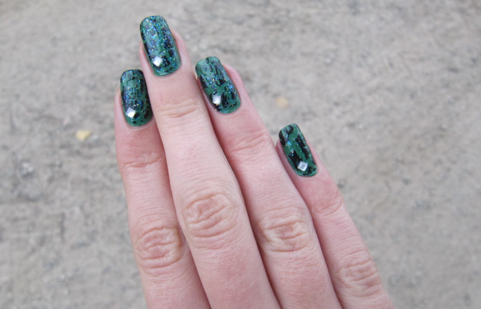 Tämän hetkisissä lakkauksissa on tosiaankin käytetty OPIn Don´t Mess With OPI, ja pakko myöntää että petyin lakan laatuun suuresti. Lakka oli aikamoista litkua ja se raidoitti ikävästi. Peittääkseen tarvitsi 3 kerrosta. Epätasaista tulosta piilottamaan laitoin Isadoran graffiti lakkaa ja lopuksi Wet n Wildin Halucinatea ja kulmikkaita strasseja. Aika yksinkertaiset tuli, mutta ensi kerralla voisi kokeilla jotain monimutkaisempaa. (: